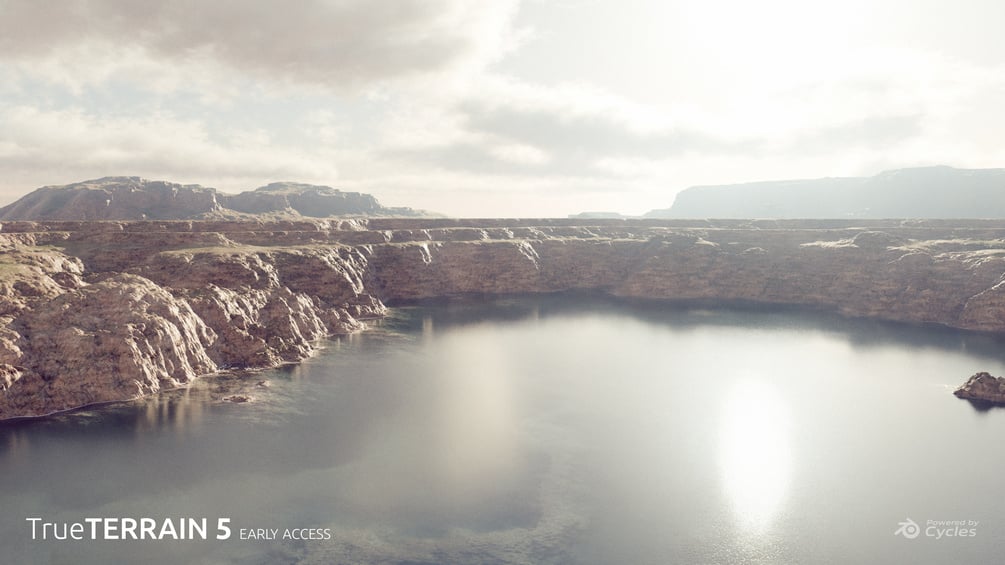 True-Terrain 5 has overhauled the geometry and shader system (scattering to come) to be the most intuitive system available for Blender. We've rebuilt from the ground up, a brand new "layer" system for both, which allows the user to add new layers to modify the overall look.